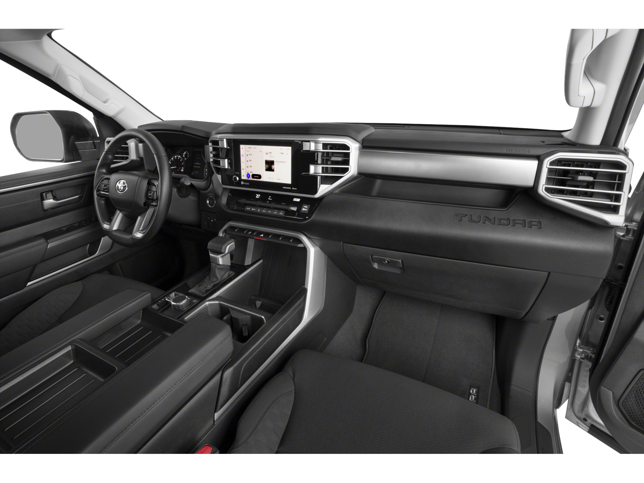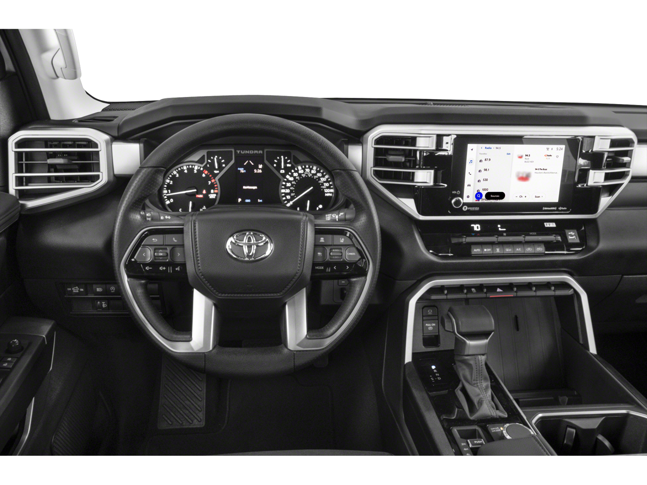 Stepping inside, you'll be greeted by a spacious and well-appointed cabin. The Tundra SR5 comes equipped with a premium audio system, Apple CarPlay and Android Auto integration, and a suite of advanced safety technologies like automatic high-beam headlights and a rearview camera. The comfortable front bucket seats and available power-adjustable driver's seat ensure you'll enjoy every mile behind the wheel.